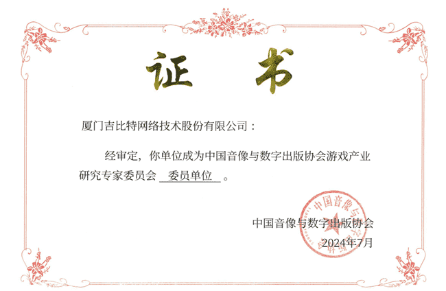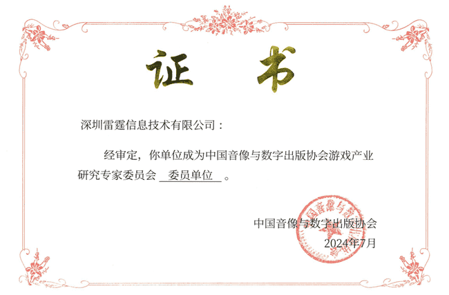 2024年7月25日,,,中国音像与数字出版协会游戏产业研究专家委员会(以下简称“中国音数协游戏专委会”)成立大会在上海市召开,,,厦门赏金大对决网络技术股份有限公司及其子公司深圳雷霆信息技术有限公司(以下统称“公司”)正式成为中国音数协游戏专委会委员单位。。