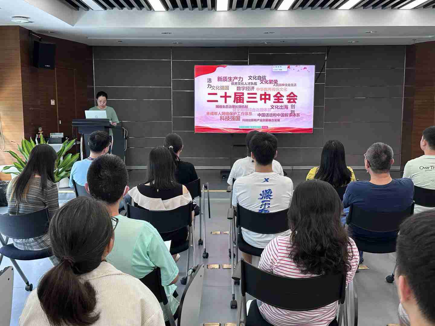与会人员深入学习《决定》内容。。。党的二十届三中全会提出必须增强文化自信,,发展社会主义先进文化,,弘扬革命文化,,,传承中华优秀传统文化,,,加快适应信息技术迅猛发展新形势,,,构建更有效力的国际传播体系,,,,这为广大文化产业工作者指明了奋斗方向。。。。