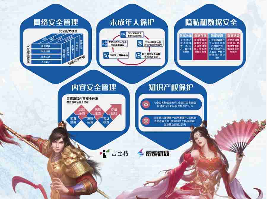 本次赏金大对决展区以网络安全管理、、内容安全管理、、、、未成年人保护、、、隐私和数据安全、、、、知识产权保护五个模块介绍公司游戏安全工作成果,,体现赏金大对决高度重视网络安全,,严格遵守相关法律法规要求,,,,积极承担企业主体责任。。
